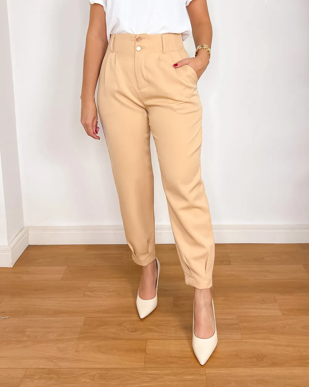 Calça Alfaiataria Feminino Cenoura Com Pregas na Cintura E na Barra (cópia)