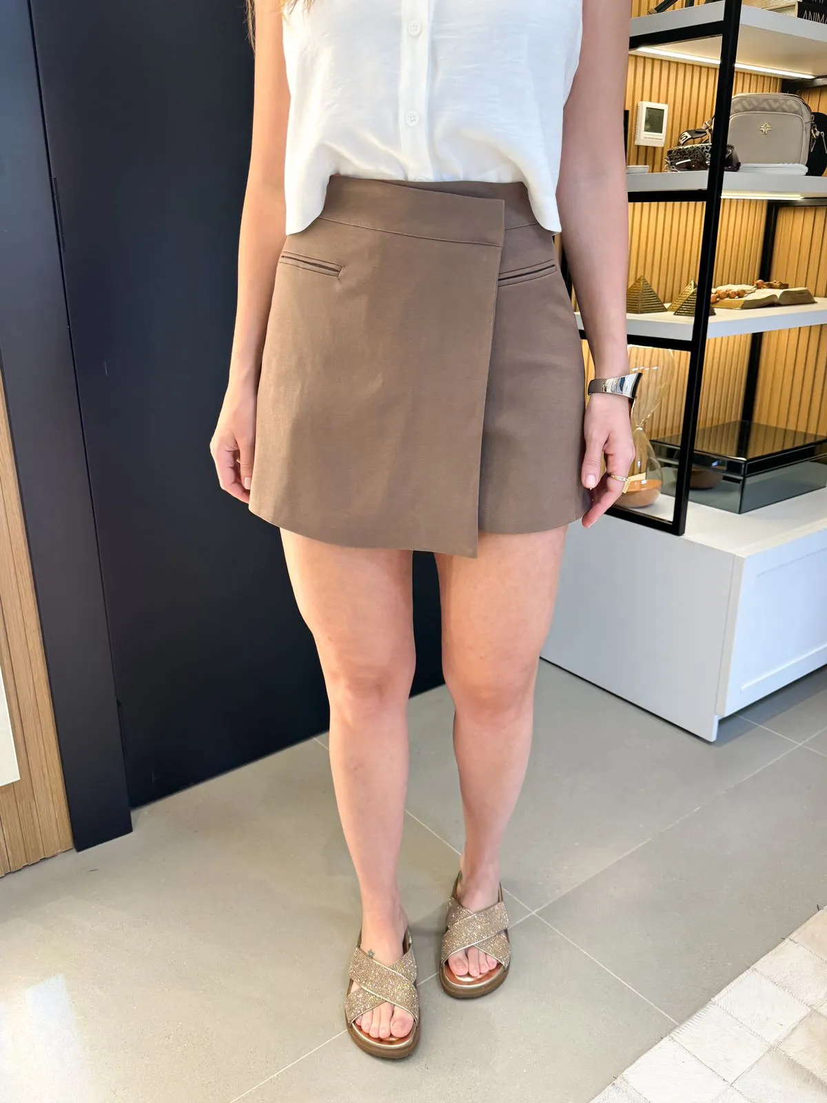 Short Saia Avelã em Alfaiataria